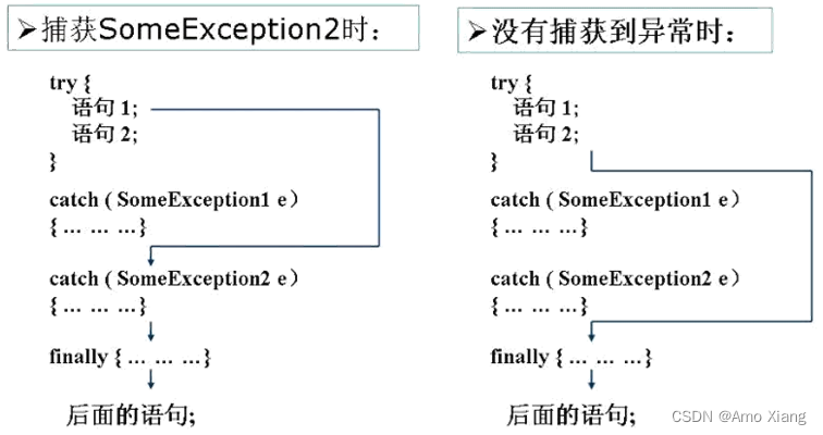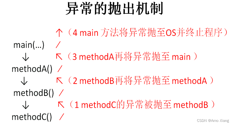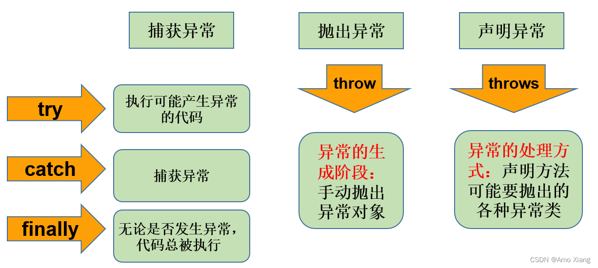 ③ 自定义异常对象只能手动抛出。抛出后由 try…catch 处理,也可以甩锅 throws 给调用者处理。