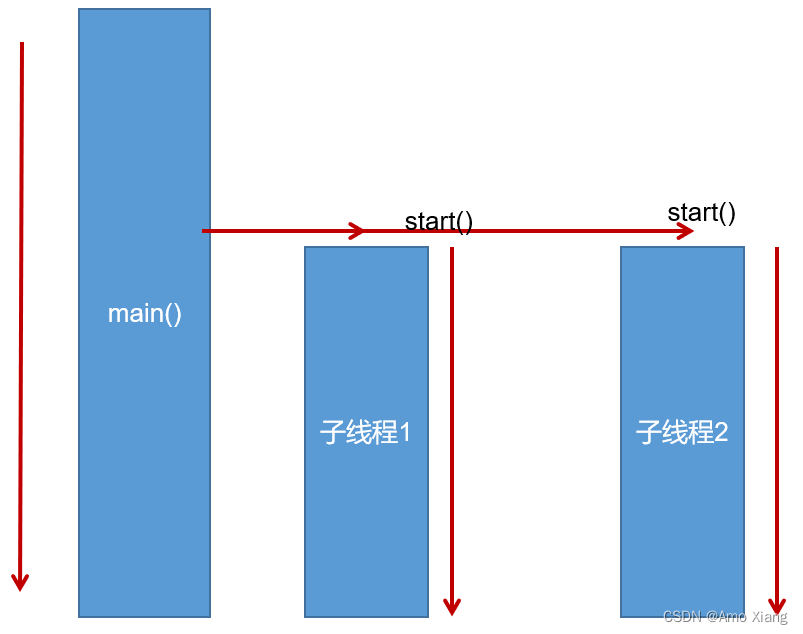 - 要想实现多线程,必须在主线程中创建新的线程对象。