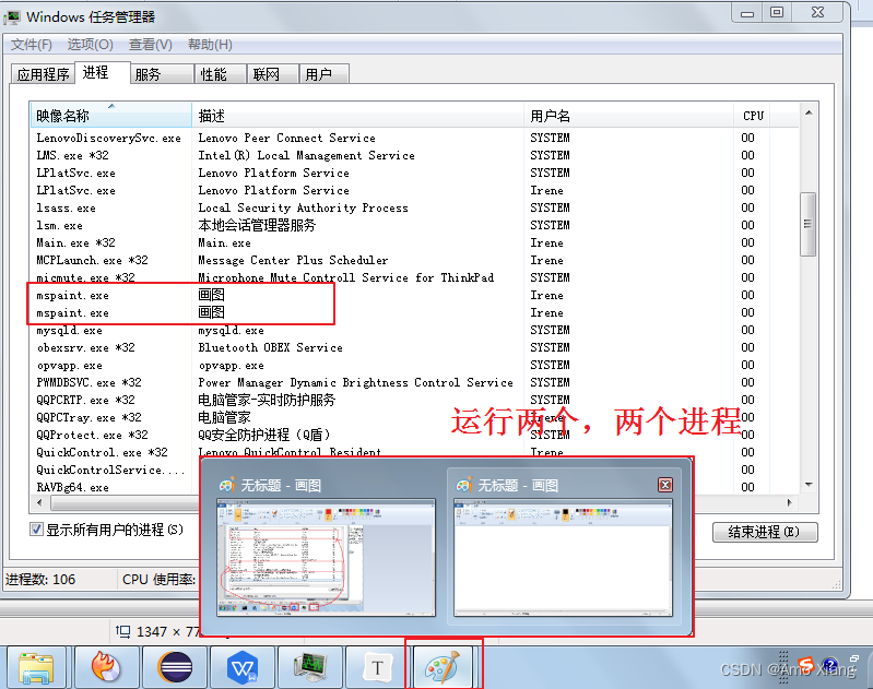 操作系统调度和分配资源的最小单位(亦是系统运行程序的基本单位),系统在运行时会为每个进程分配不同的内存区域。 - 现代的操作系统,大都是支持多进程的,支持同时运行多个程序。比如:现在我们上课一边使用编辑器,一边使用录屏软件,同时还开着画图板,dos窗口等软件。