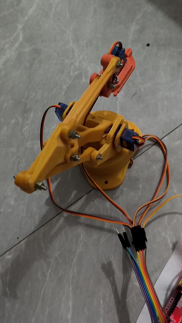 arduino uno r3 机械臂 开发版使用DC口7V-12V 供电(只用usb(5v)供电口 舵机驱动不了,usb口和DC口可同时供电),舵机正负极并联后直接使用拓展版5v供电,舵机信号线按照代码依次接到D9、D10、D11、D12,对应开发板 9、10、11、12 IO口。代码只是实现了功能,遥杆控制机械臂的大臂、小臂,按键控制底座转动和夹子。舵机的移动得根据实际情况更改每次角度+-的大小调以及延时时间试出最合适的参数。arduino uno r3 改进板、sg90舵机(180度 x 4)、