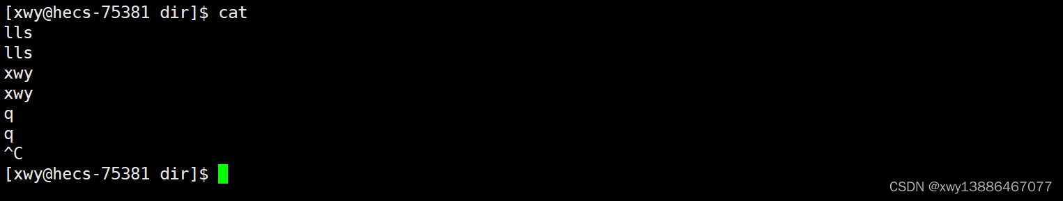 cat这个命令在不加任何其他东西时,默认会连接标准输出和标准输入文件。即你从键盘打什么,它就输出什么。