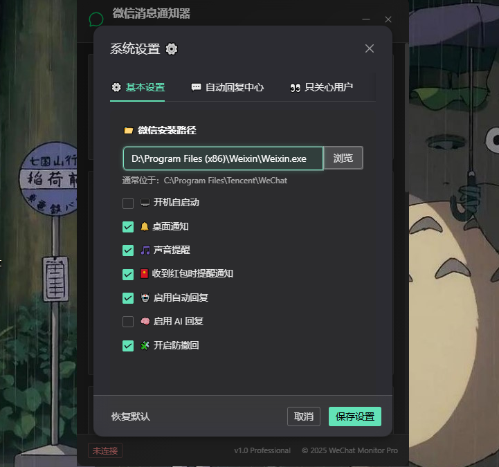 带自动回复、AI 回复、自定义 APIKey、提示词 · 桌面提醒版 支持直接在桌面回复