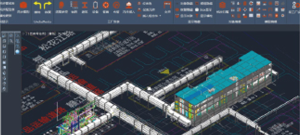 ① 中望CAD 增强三维引擎可流畅操作8200条管线和1.6亿三角面片,承载大型项目模型清晰可视化、绘制、修改。