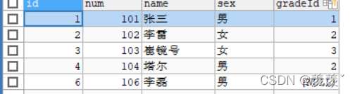 查询的例子使用demo数据库中的student表, 表如下