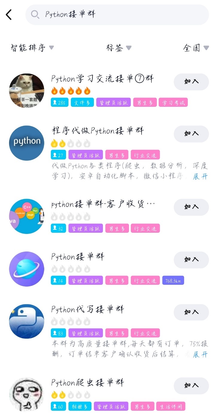 所以大家也可以去找一些Python学习技术交流群,群里也可以结交到一些同行,在学习和实操过程中出现问题也可以在群里提出来,比自己闷头摸索强很多。