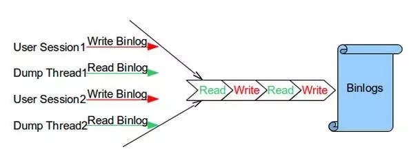 旧版本半同步复制在主提交binlog的写会话和dump thread读binlog的操作都会对binlog添加互斥锁,导致binlog文件的读写是串行化的,存在并发度的问题。