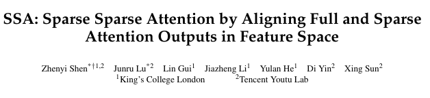 - 论文标题:SSA: Sparse Sparse Attention by Aligning Full and Sparse Attention Outputs in Feature Space