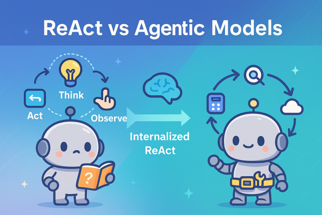那么,有了 Agent 能力的模型为何不需要我们提供 ReAct 提示词了呢? 因为它们已经在训练中学会了这种“思考-行动”模式,把 ReAct 框架融入到了自身能力里。