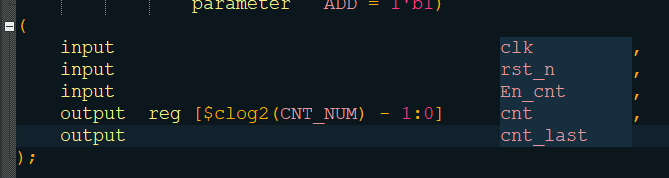 按下Tab即可完成parameter的自动补全,如果要打posedge,可以再多打一个字母o,或者通过键盘方向键选中,然后Tab补全。