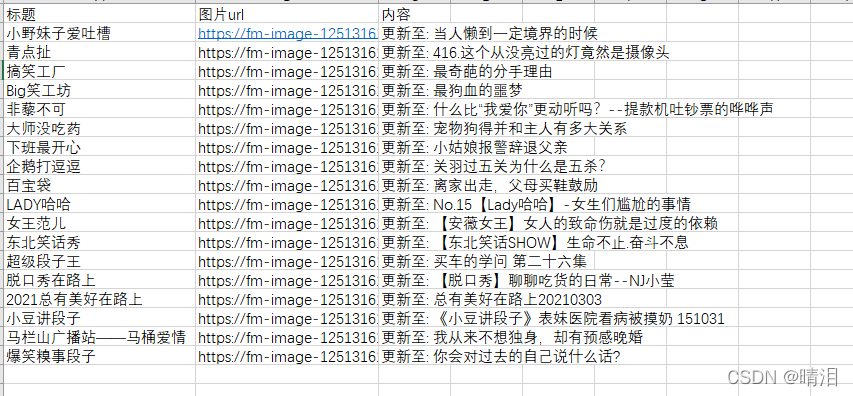csv_writer.writerow(["标题", "图片url", "内容"]) # 构建列表头