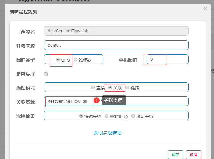 链路流控模式指的是,当从某个接口过来的资源达到限流条件时,开启限流。它的功能有点类似于针对来源配置项,区别在于:针