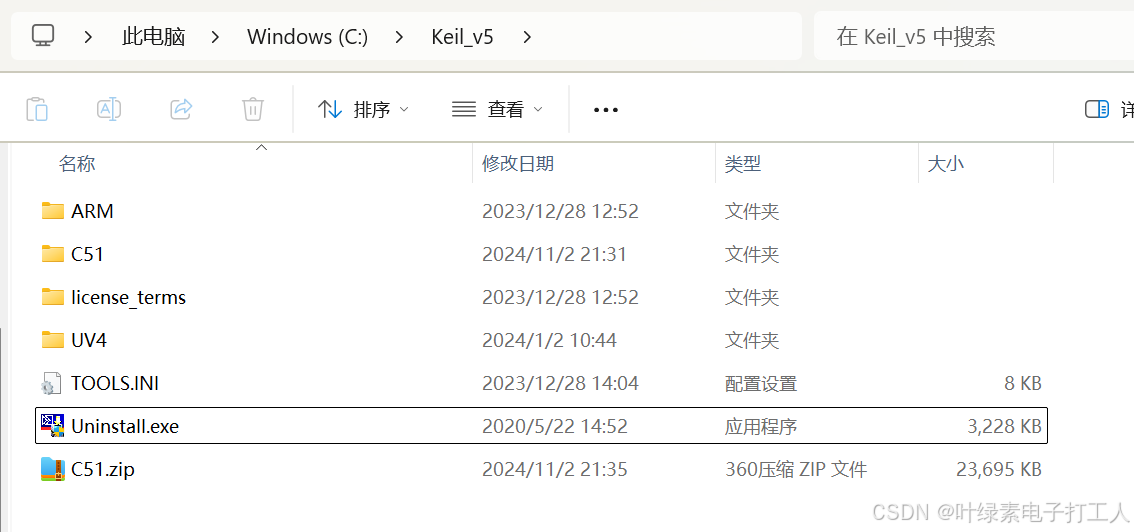 之后点进这个文件夹里,发现了压根没有C51的文件夹(截图的时候已经解决,所以图片有,如果遇到了这个问题,一般就是没有),如下图所示。