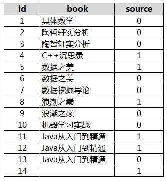 有如下数据(表名为booksource):