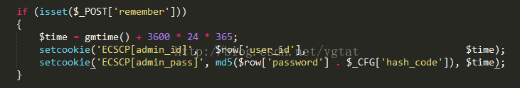只需要把密码的hash值和hashcode的值连接起来进行md5加密即可获得密码,可以构造cookies欺骗。
