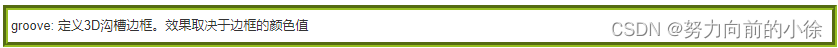 - groove: 定义3D沟槽边框。效果取决于边框的颜色值