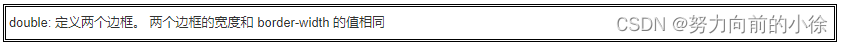 - double: 定义两个边框。 两个边框的宽度和 border-width 的值相同