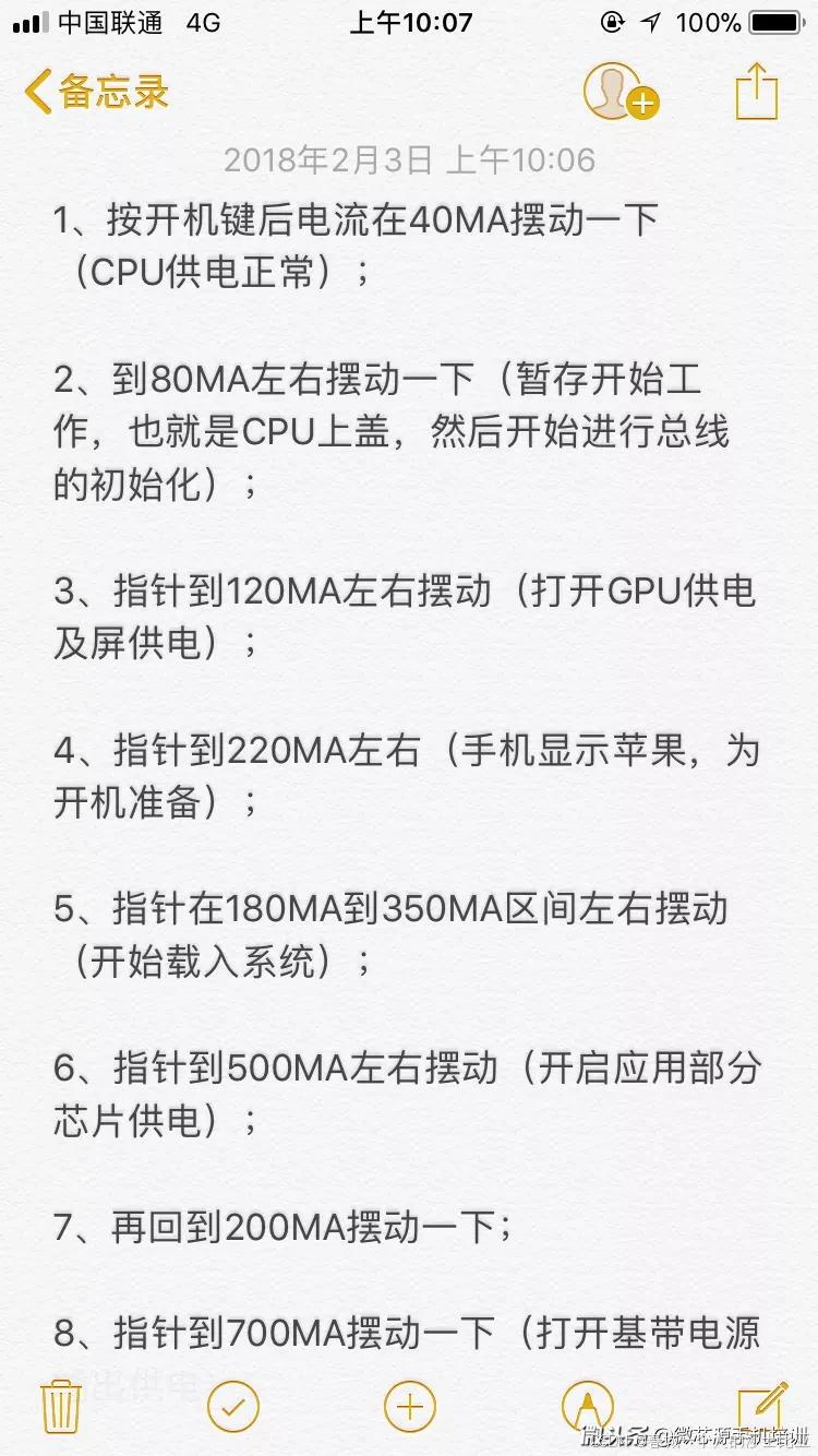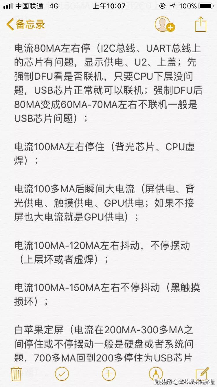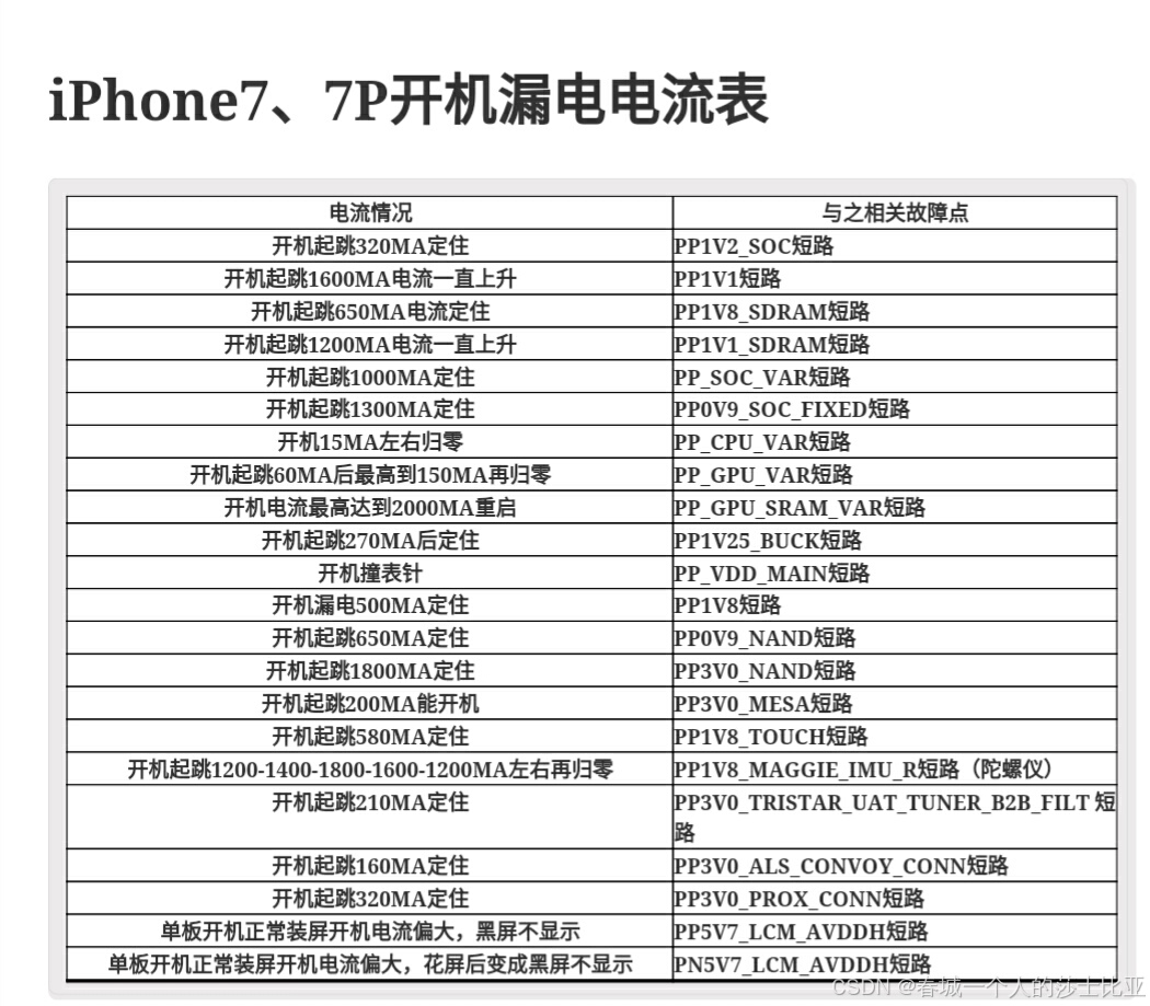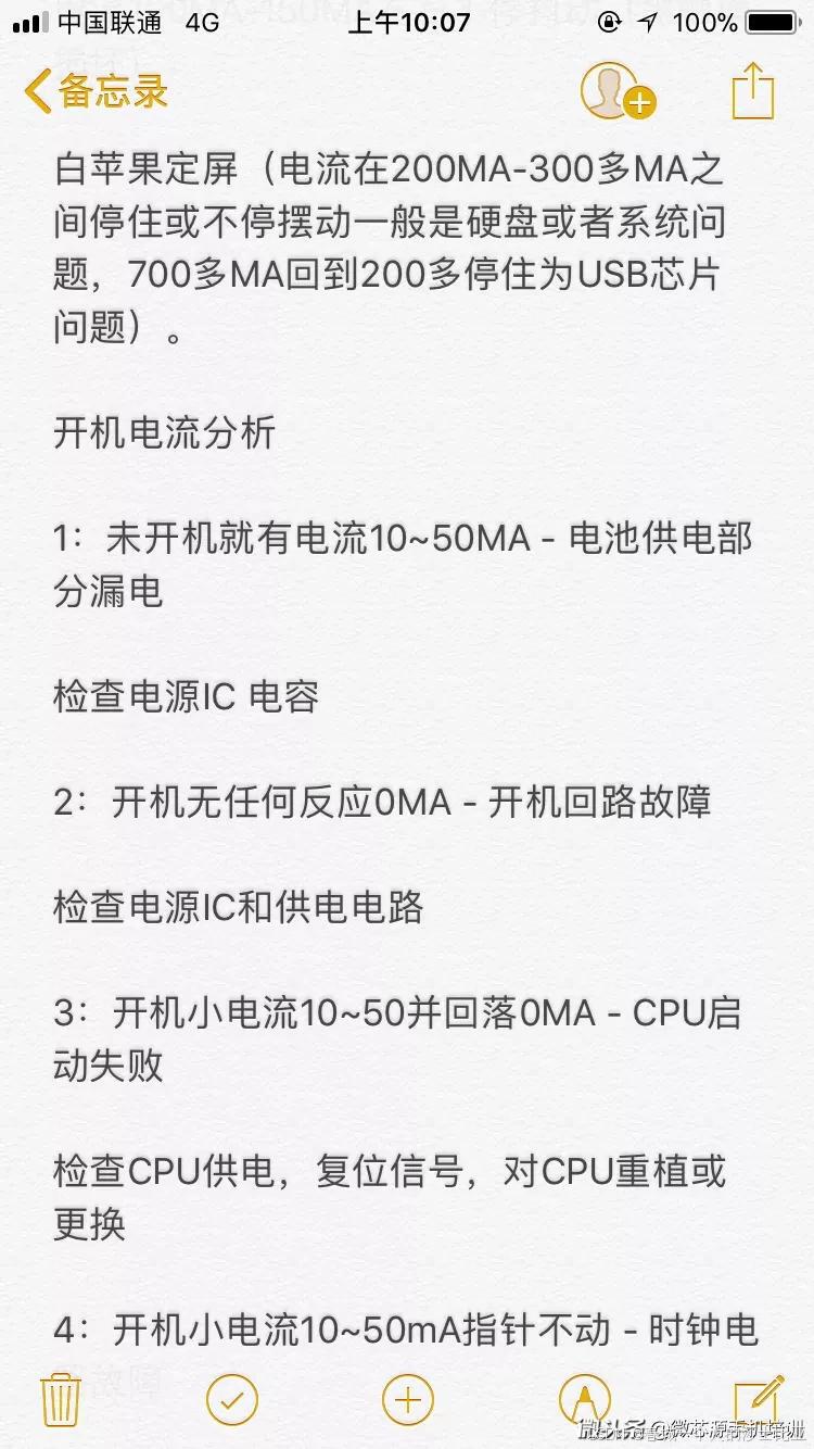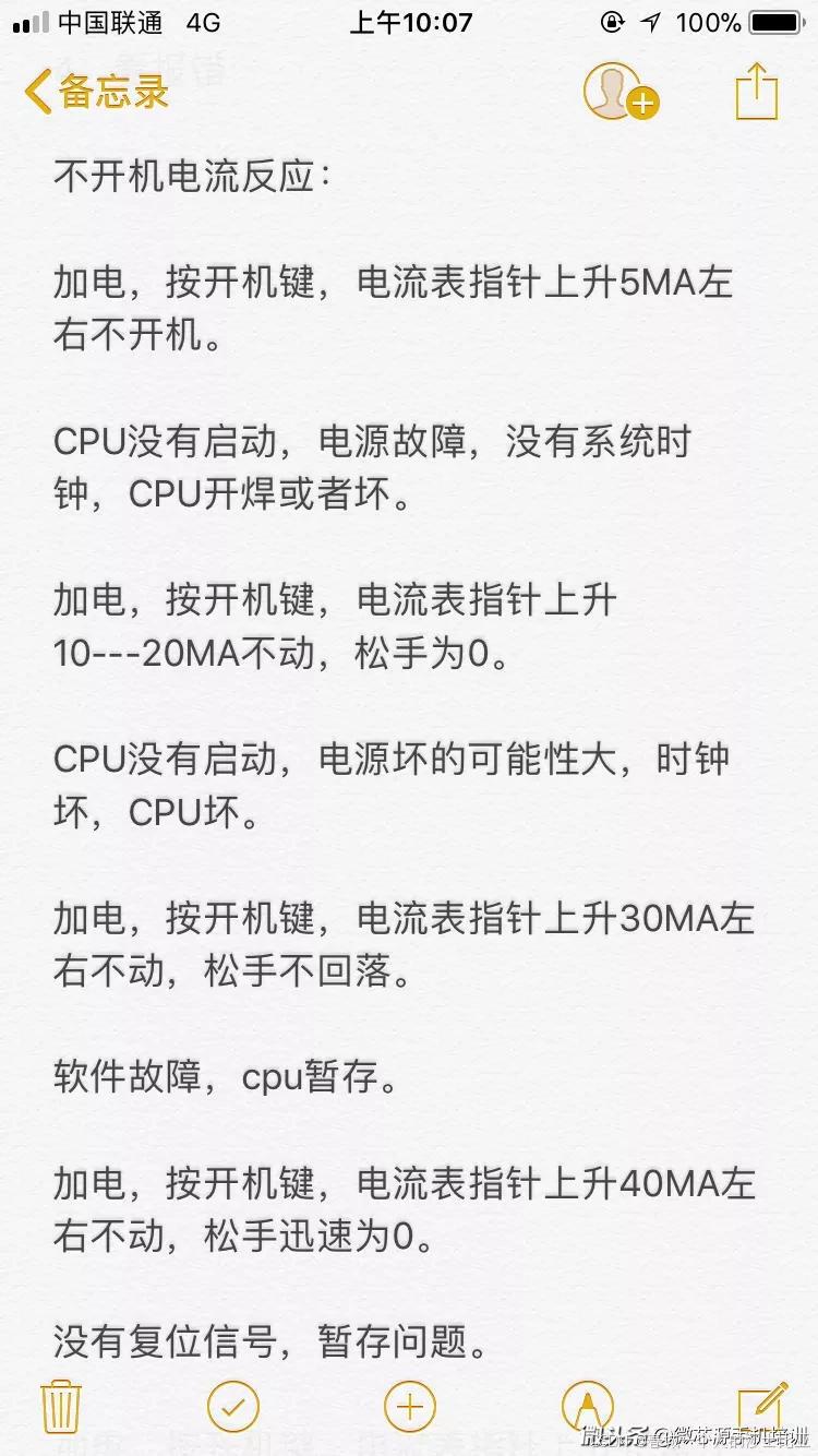 手机不开机7:手机接电源有小电流漏电,检查充电电路和电源IC供电电路相关元件。"