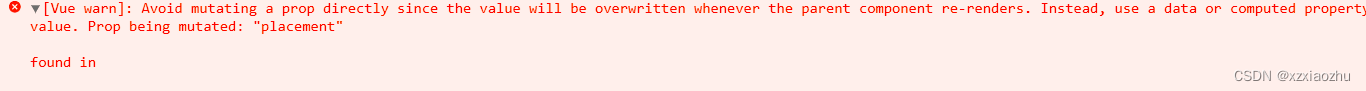 [Vue warn]: Avoid mutating a prop directly since the value will be overwritten whenever the parent component re-renders. Instead, use a data or computed property based on the prop's value. Prop being mutated: "placement"