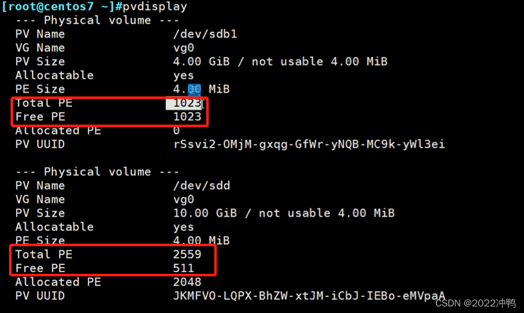 • 物理卷是用固定大小的物理区域(Physical Extent,PE)来定义的