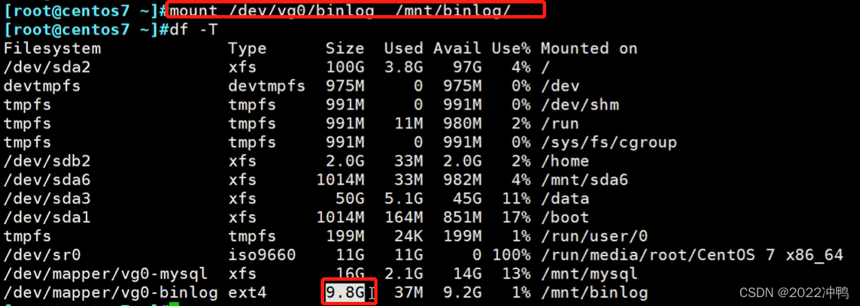 创建文件系统 mkfs.ext4 /dev/vg0/mysql