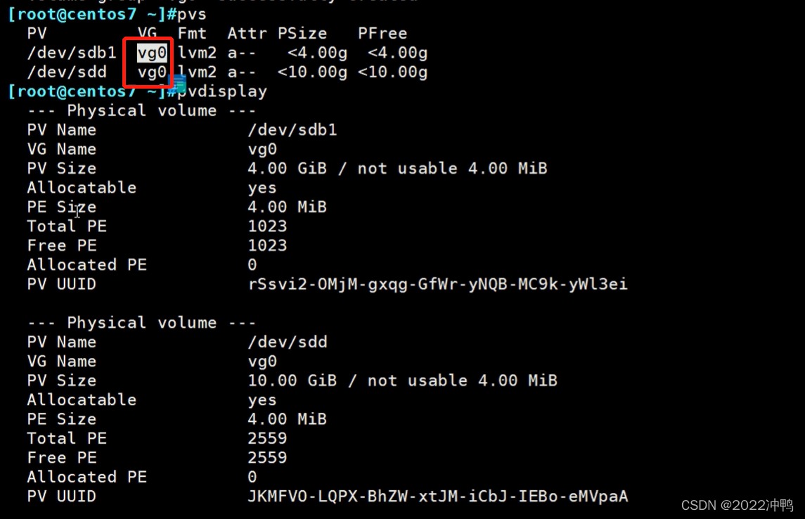 创建卷组 vgcreate -s 16M vg0 /dev/sdb