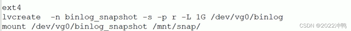 - lvcreate -s -n mysql_snapshot2 -L 1G /dev/vg0/mysql