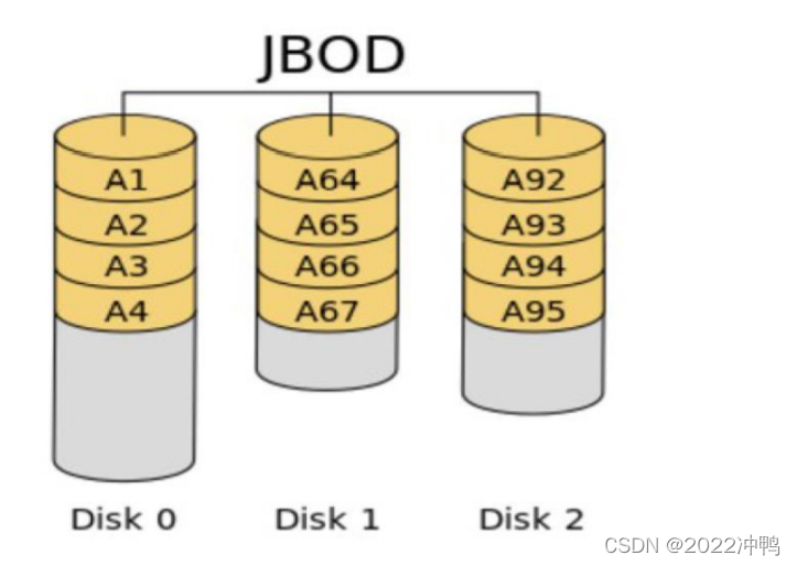 缺点:将一份数据均等放在不同硬盘上,如果有一块硬盘损坏,数据就会损坏不能用,目前基本不用;容错性太差。