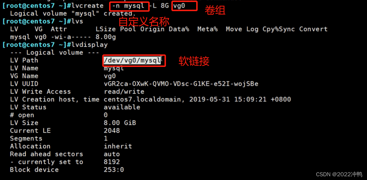 创建逻辑卷lvcreate -n mysql -L 2G vg0