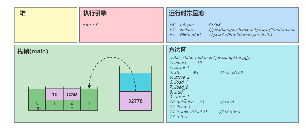 第#1项 0a (10) 表示一个 Method 信息, 00 06 (6) 和 00 15 (21) 表示它引用了常量池中 #6 和 #21项来获得这个方法的所属类和方法名
