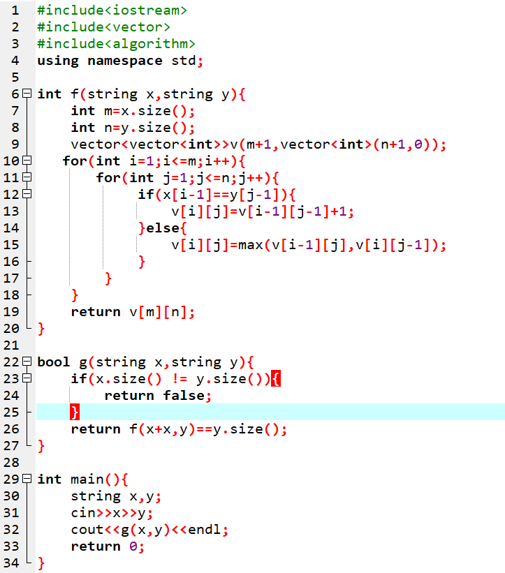 22 (1.5分) f函数的返回值等于两个输入字符串的最长公共子串的长度( )