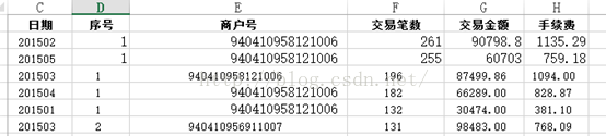 按商户号分组,对交易笔数,交易金额,手续费进行分类求和。最后按交易笔数进行降序排序。