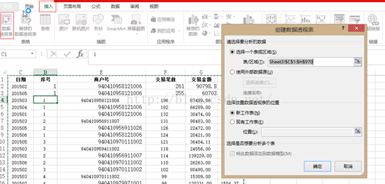 在‘选择一个表或区域’处会自动选择所有数据区域: