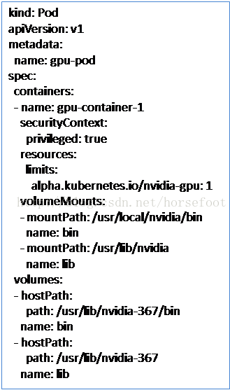 在kubernetes1.3中提供了对Nvidia品牌GPU的支持,在kubernetes管理的集群中每个节点上,通过将原有的Capacity和Allocatable变量进行扩展,增加了一个针对Nvidia品牌GPU的α特性:alpha.kubernetes.io/nvidia-gpu。其中Capacity变量表示每个节点中实际的资源容量,包括cpu、memory、storage、alpha.kubernetes.io/nvidia-gpu,而Allocatable变量表示每个节点中已经分配的资源容量,同样包括包括cpu、memory、storage、alpha.kubernetes.io/nvidia-gpu。