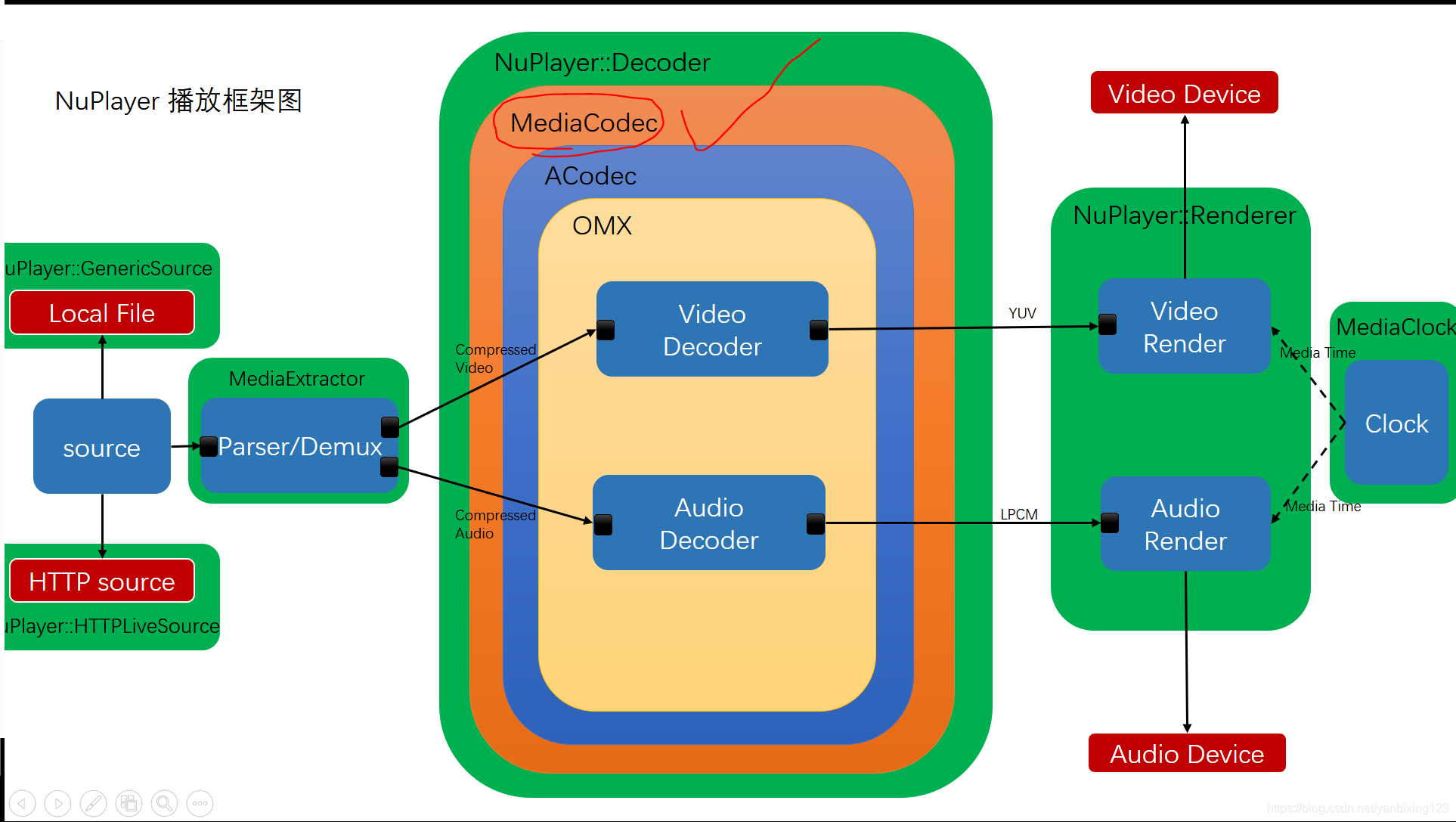 来看看MediaCodec在整个NuPlayer架构中的位置: