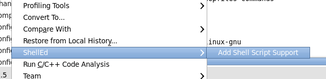 右键点击工程名称,在弹出的菜单中选择ShellED → Add Shell Script Support