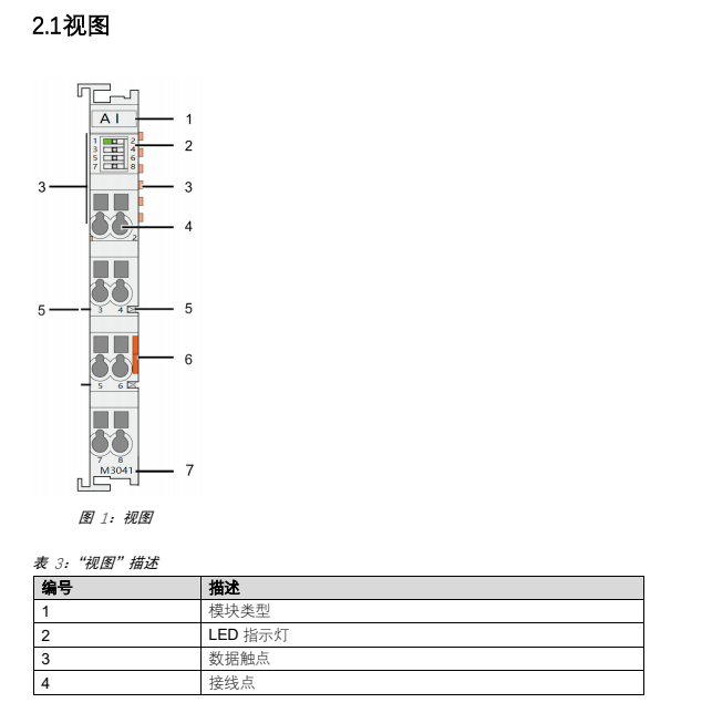 该模块有 4 个输入通道,即 AI1、AI2、AI3、和 AI4,可接收来自现场设备(例如 2 线
