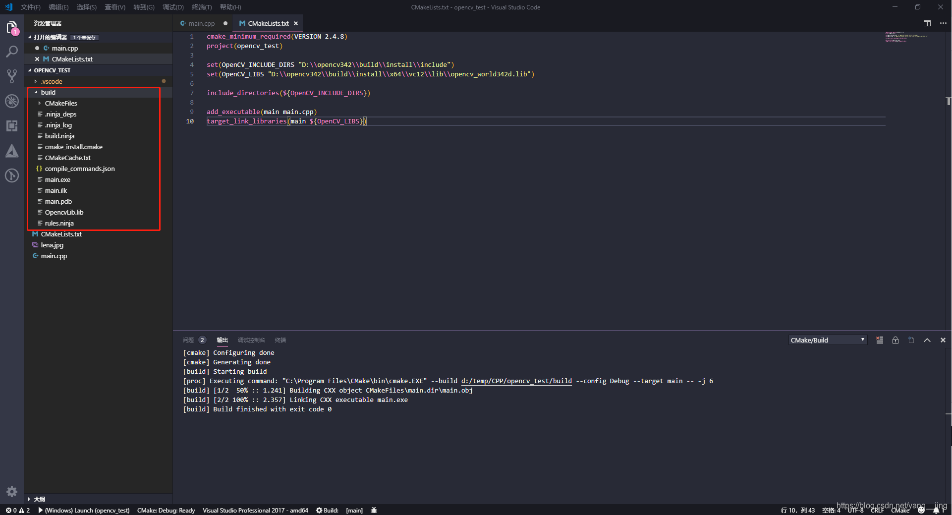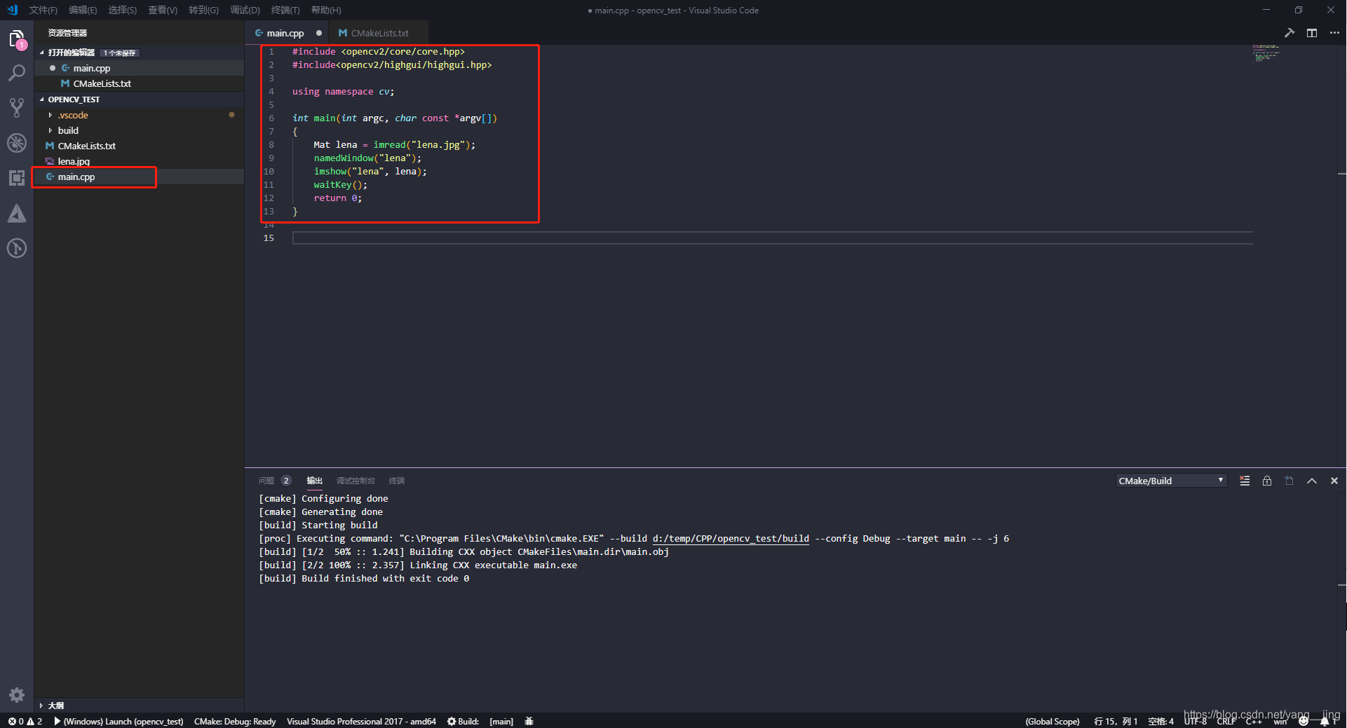 cmake+vs2017:用于编译c++程序,或使用其他编译方式,例如MinGW-W64,gcc等。
