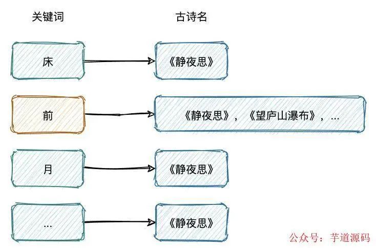 这样我们一输入“前”,借助倒排索引就可以直接定位到符合查询条件的古诗。