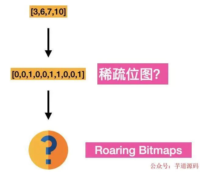 假设有这么一个数组,我们第一个压缩的思路是什么?用位的方式来表示,每个文档对应其中的一位,也就是我们常说的位图,bitmap。