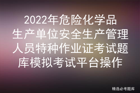 2022危险化学品生产单位安全生产管理人员操作证考试题为危险化学品生产单位安全生产管理人员上岗证题目的新全考试题型!2022年危险化学品生产单位安全生产管理人员特种作业证考试题库模拟考试平台操作依据危险化学品生产单位安全生产管理人员最新教材汇编。危险化学品生产单位安全生产管理人员上岗证题库通过安全生产模拟考试一点通提高考试通过率。