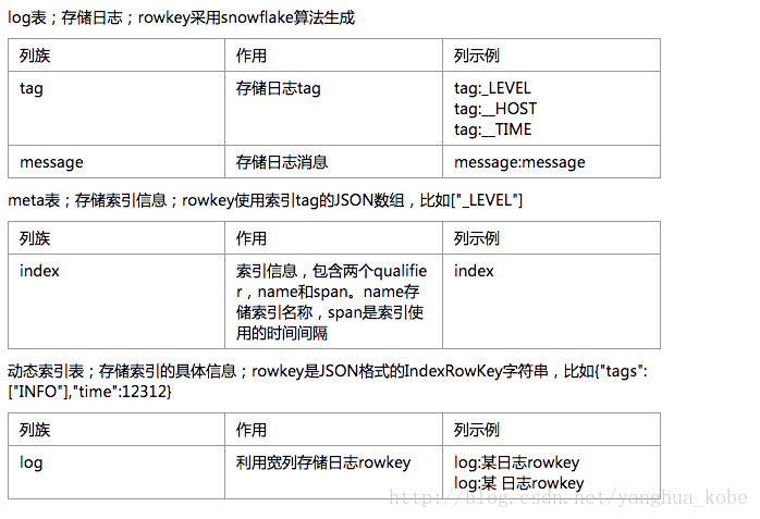 (1)HBase的qualifier相当灵活,可以动态创建,非常适合日志这种tag不固定的半结构化数据(这里的灵活性主要针对tag的存储)