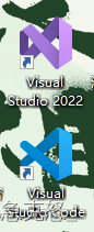 注意安装的是VSCode(默认蓝色图标---图下)并非VS(默认紫色图标---图上)