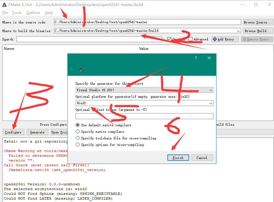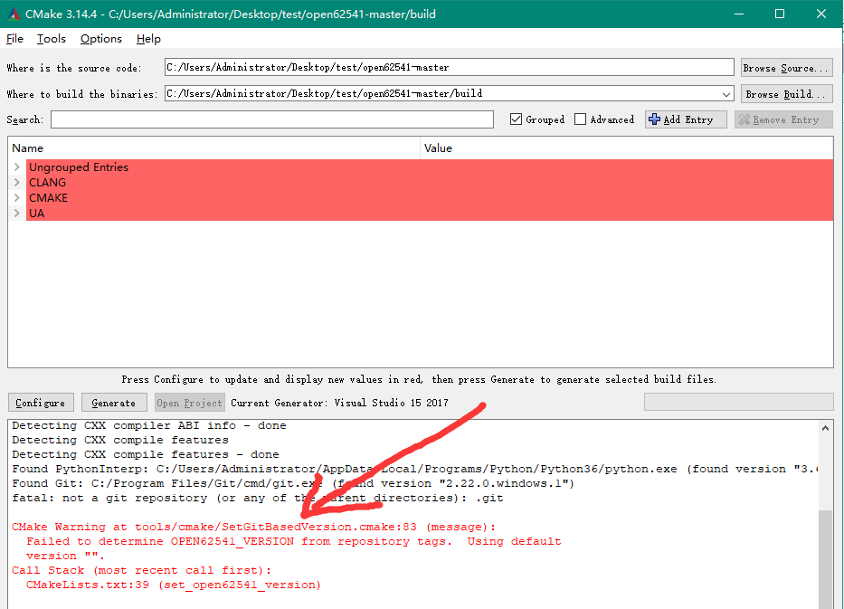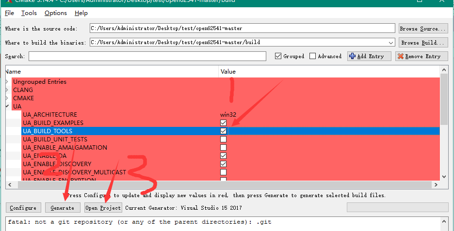 然后分别点击Generate ,Open Project 后会自动打开你的vs2017