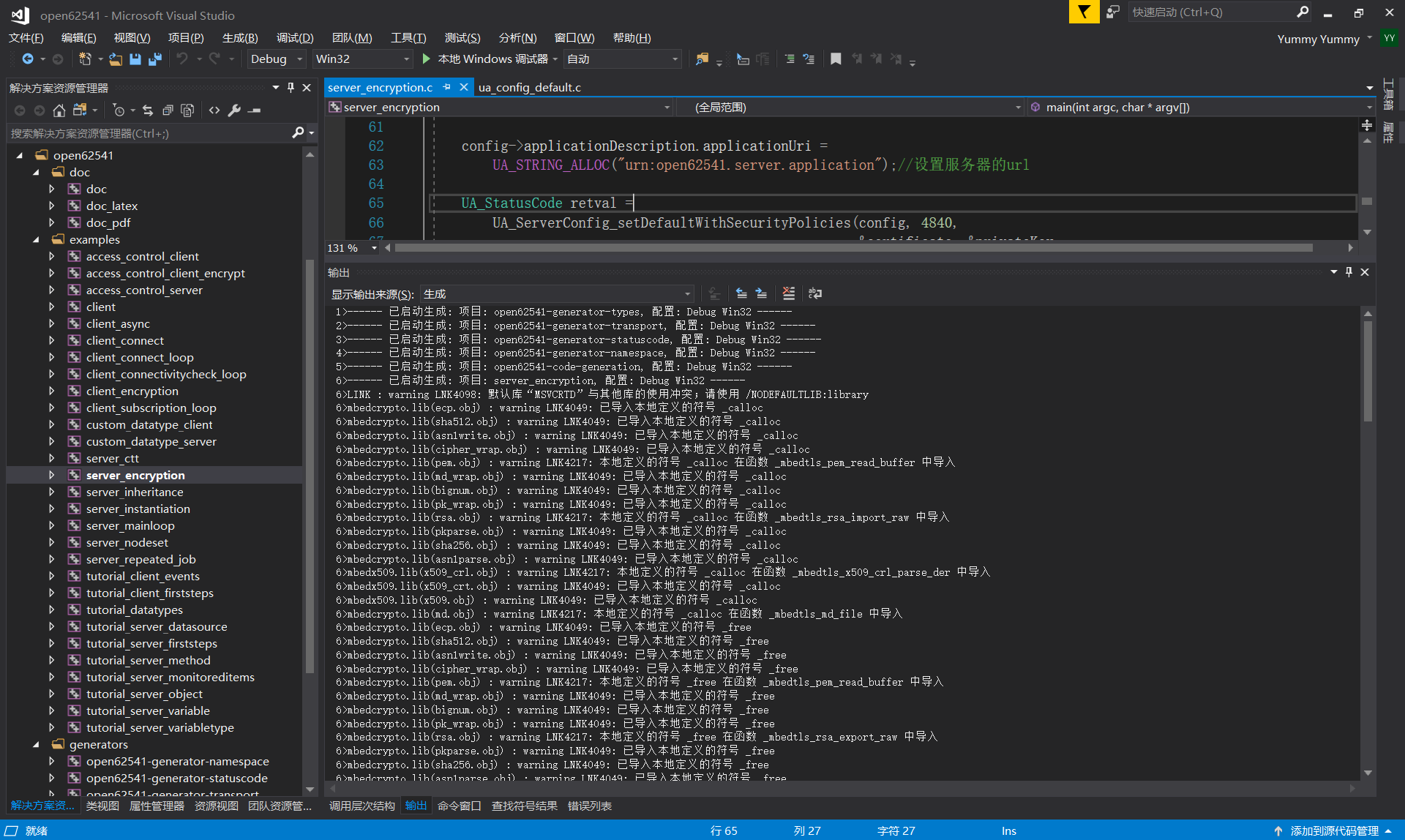 在build文件夹下就生成了open62541.sln而且也可以成功输出