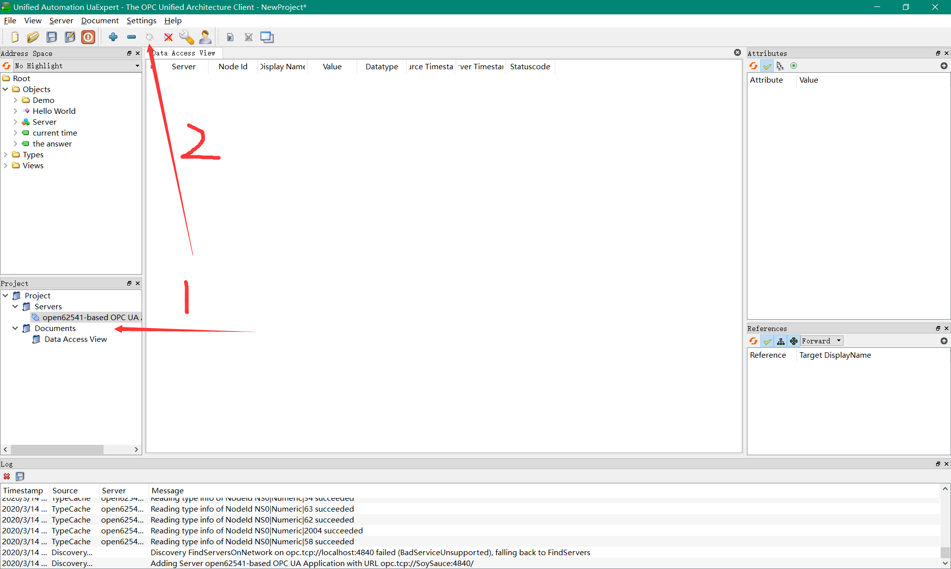 此处参考 学习open62541 --- [2] 使用UaExpert