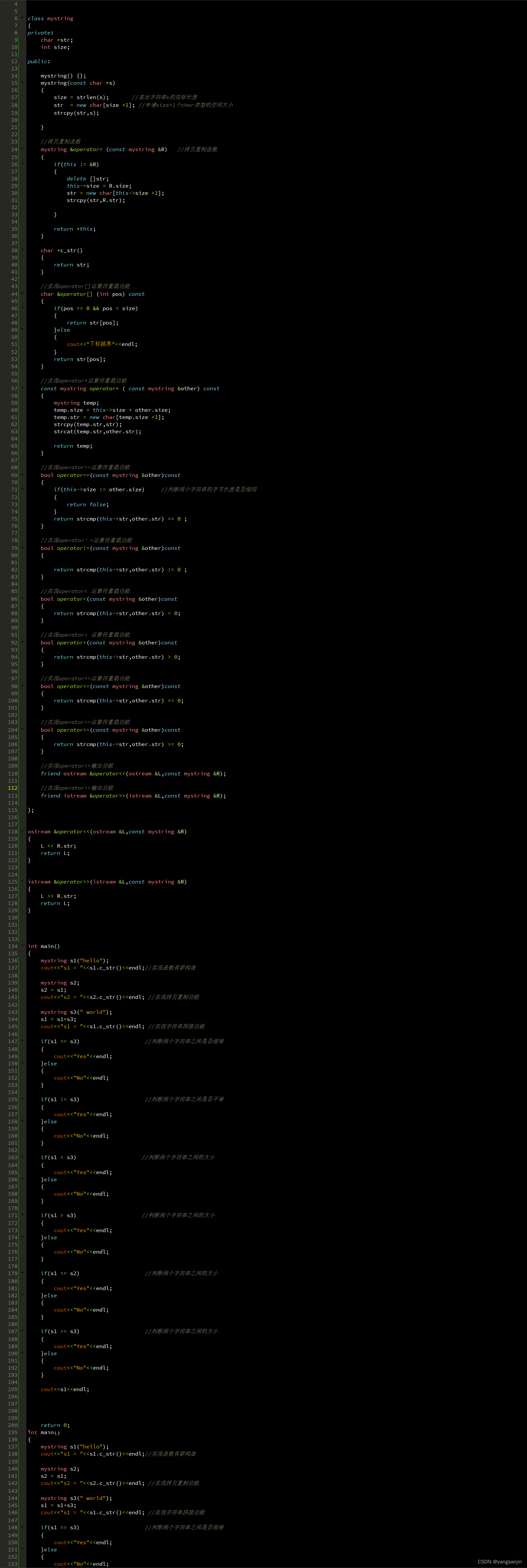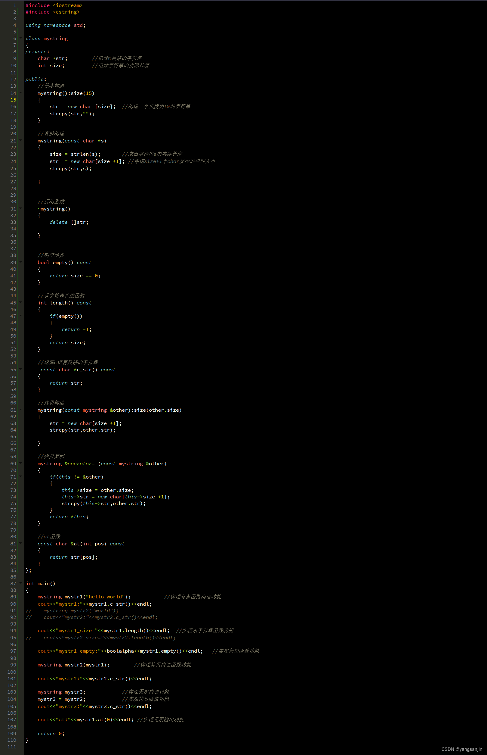 在c++使用构造函数,析构函数,拷贝构造,拷贝复制,判空函数,at函数编写一个实现string类函数的功能 【代码】在c++使用构造函数,析构函数,拷贝构造,拷贝复制,判空函数,at函数编写一个实现string类函数的功能。