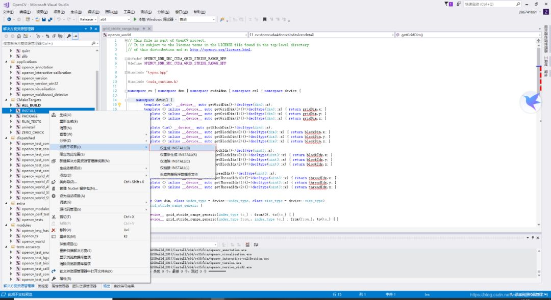 生成之后,右击INSTALL->仅用于项目->仅生成INSTALL