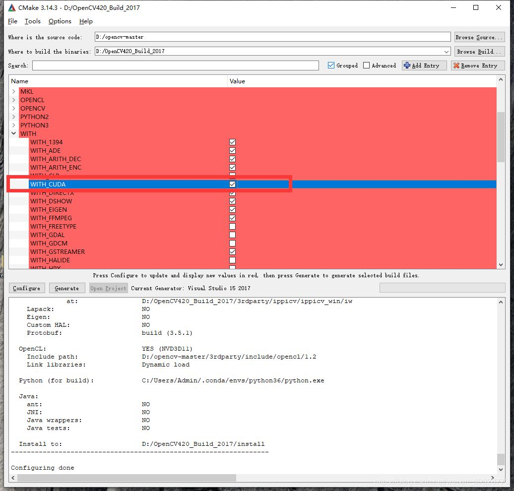 勾选WITH_CUDA。