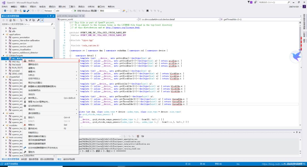 点击Open Project打开工程,在Release模式下右键点击ALL_BUILD,生成,时间较长