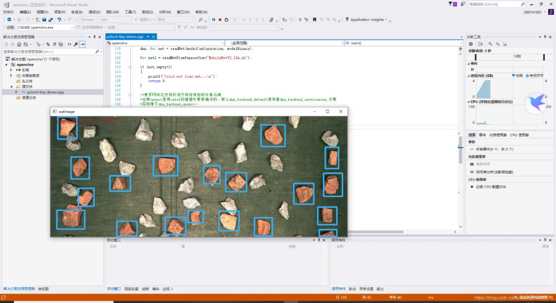 在我自己的项目上运行,首先是CPU版本(I9-9900K),推理时间在22.45ms。